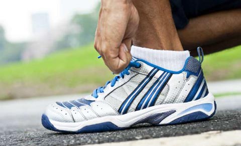 Saat sore atau malam tiba, kaki kita sudah banyak berjalan sehingga akan membesar dan mencapai titik dimana bentuk kaki telah menopang beban tubuh kita. Dengan demikian, kita dapat mencoba nomor sepatu yang sesuai dengan keadaan kaki kita setelah menempuh jarak lari tertentu. Saat mencoba sepatu lari, jangan lupa pula gunakan kaos kaki tebal atau yang akan kita gunakan saat berlari.